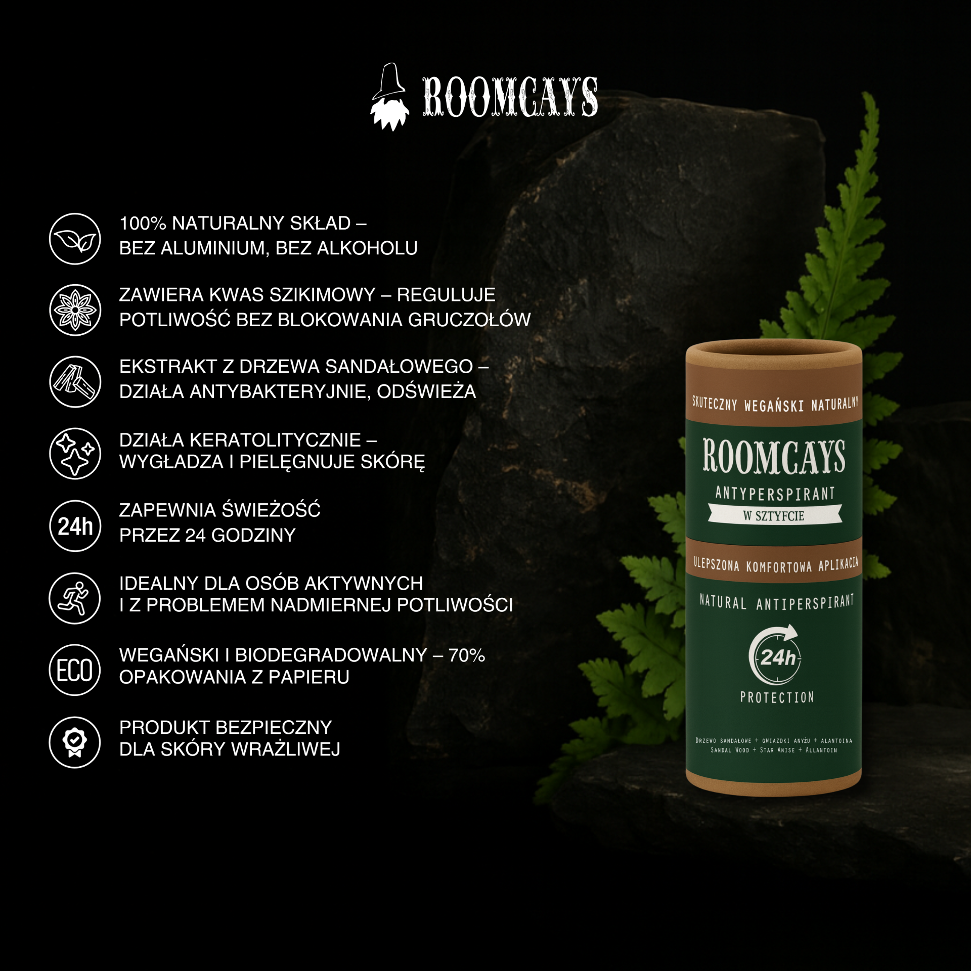Roomcays Alüminyum İçermeyen Doğal Erkek Ter Önleyici, günlük kullanım için geliştirilmiş pratik bir antiperspirant çözümüdür.