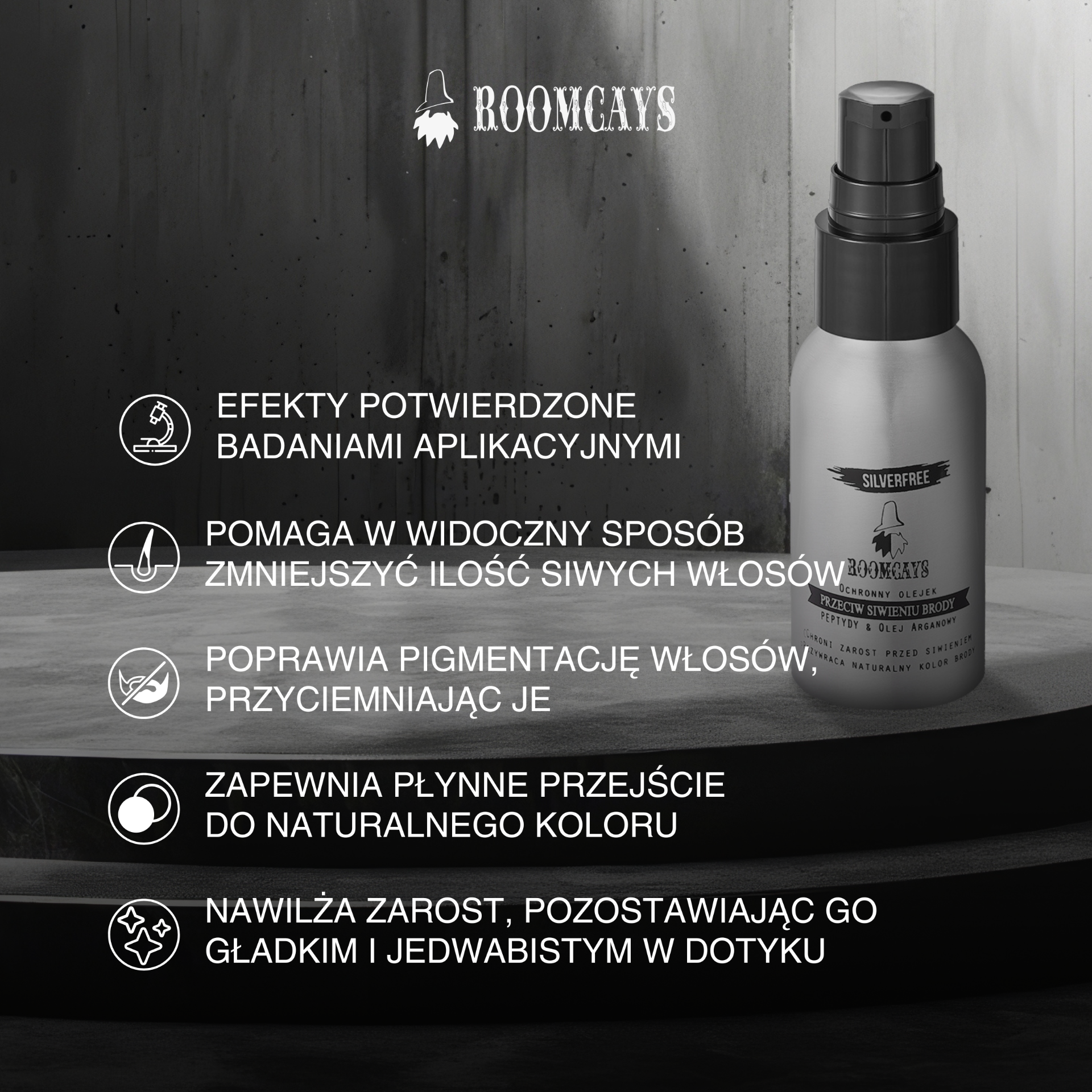 Roomcays Silverfree Doğal Sakal Nem Dengeleyici, sakal ve sakal altındaki cildin nem dengesini desteklemek için geliştirilmiştir.